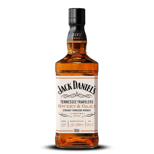 Jack Daniel's Tennessee Travelers Sweet & Oaky es un complejo whiskey de Tennessee, embotellado a 107 proof (53.5% ABV) y presentado en una botella de 500 ml. Está elaborado con una mezcla de 80% maíz, 12% cebada y 8% centeno, y envejecido en barricas nuevas de roble americano carbonizado. Esta expresión forma parte de la serie Tennessee Travelers, que rinde homenaje al deseo de Jack Daniel de explorar el mundo de los sabores que se encuentran en los whiskeys elaborados en la destilería Jack Daniel. Notas de Cata: Nariz: Aromas de caramelo, vainilla y roble tostado llenan la nariz, con toques de arce, grosella negra, limón y corteza de pan. Paladar: El paladar ofrece un carácter equilibrado, con notas de manzanas dulces, vainilla cremosa, roble suave, miel, rollo de canela, toffee de nuez y un poco de chocolate/café. Se concentra en un equilibrio de dulzura y roble en el paladar medio. Final: El final es suave, largo, cremoso y limpio, con notas persistentes de caramelo de arce azucarado, maíz con mantequilla, canela y roble.