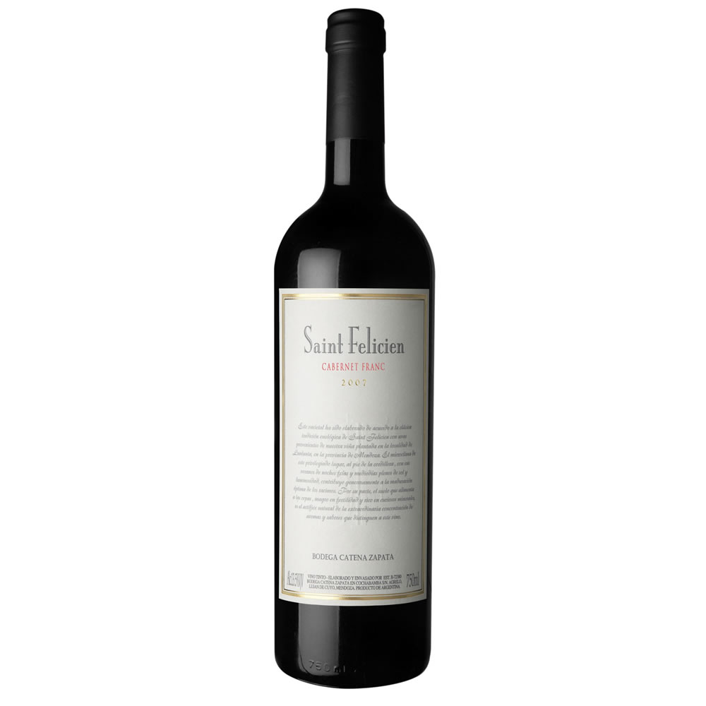 Saint Felicien Cabernet Franc es un vino distintivo, elegante y complejo elaborado por la prestigiosa Bodega Catena Zapata.Este varietal resalta el potencial del Cabernet Franc proveniente de viñedos de gran altura en Mendoza, Argentina, ofreciendo una experiencia única para los amantes del vino.
